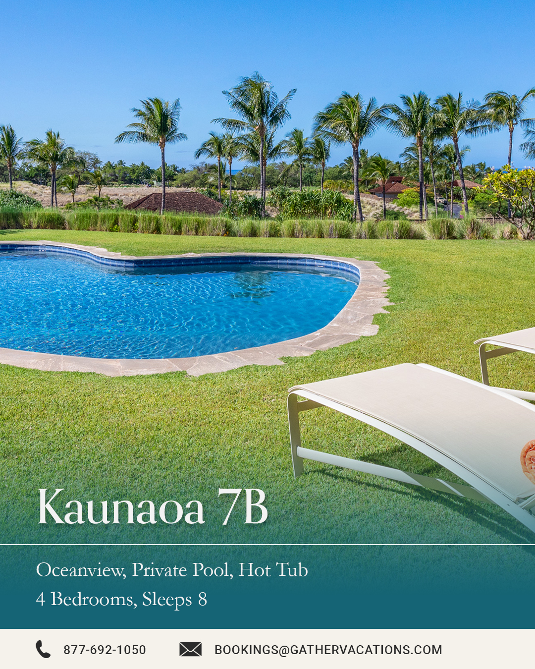 Last month we brought in a new graphic designer onto the team, and we’re already putting his talents to great use! As part of a major effort to boost our digital advertising presence, we’ve begun creating new individual Meta ads for each property in our portfolio. This is a big lift for 500+ properties and we’re working through them at pace until every property has its own visually compelling, high-performing ad. Check out two examples that are live: Kaunaoa 7B at Mauna Kea Resort on the Big Island and Ka Hui Ana at Kukuiula on Kauai.